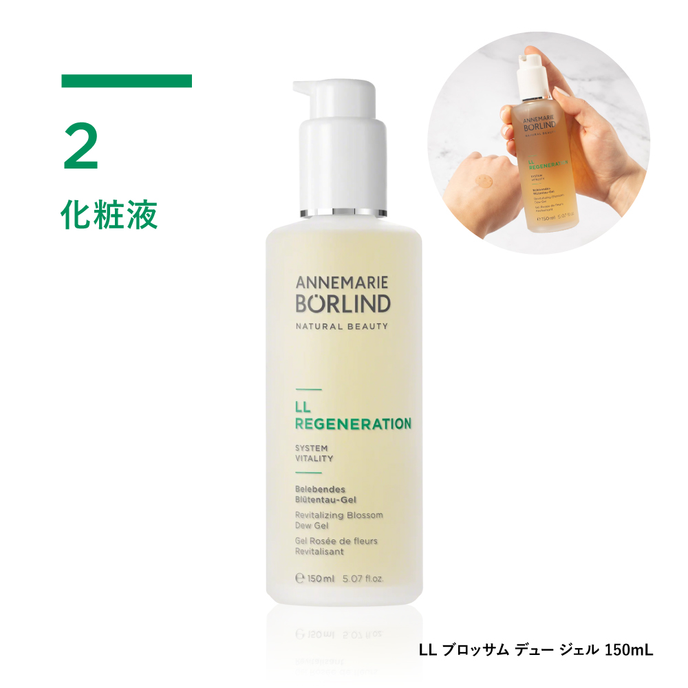 洗顔後、適量を手のひらにとり、顔と首にやさしくなじませます。