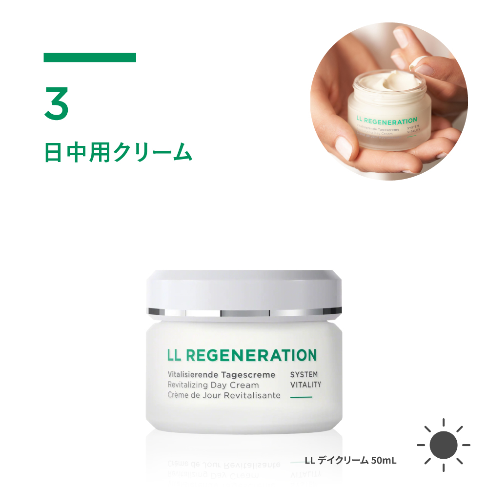 朝、化粧水の後、適量を手のひらにとり、お顔と首にやさしくなじませます。