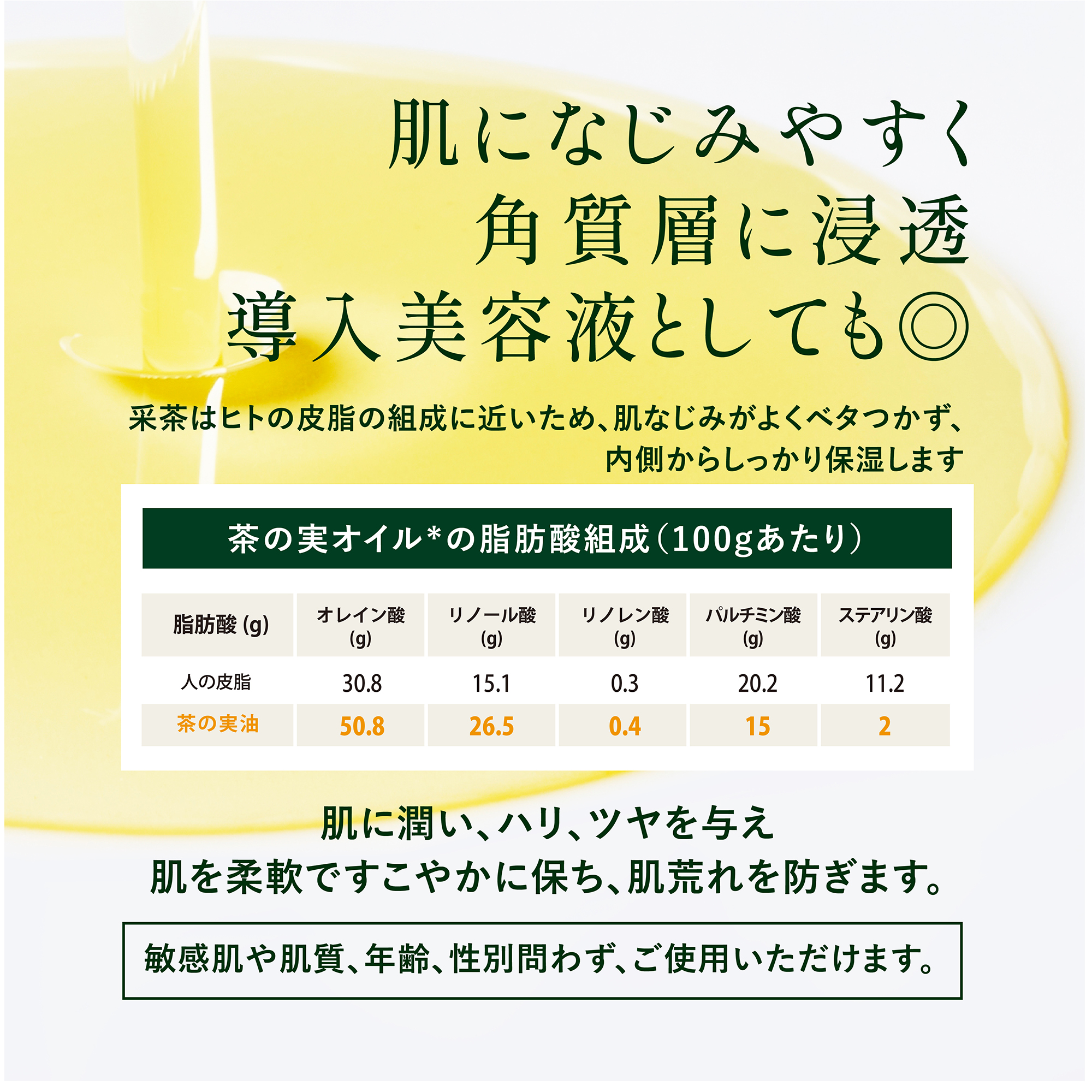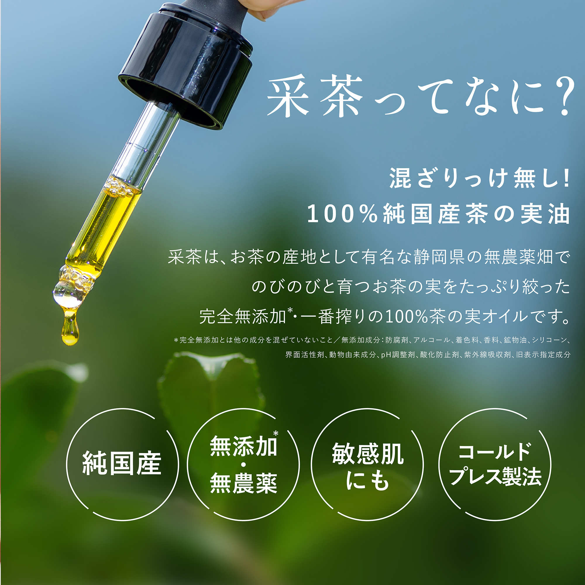 采茶は純国産の茶の実100%を使ったナチュラルなフェイシャルオイルです。