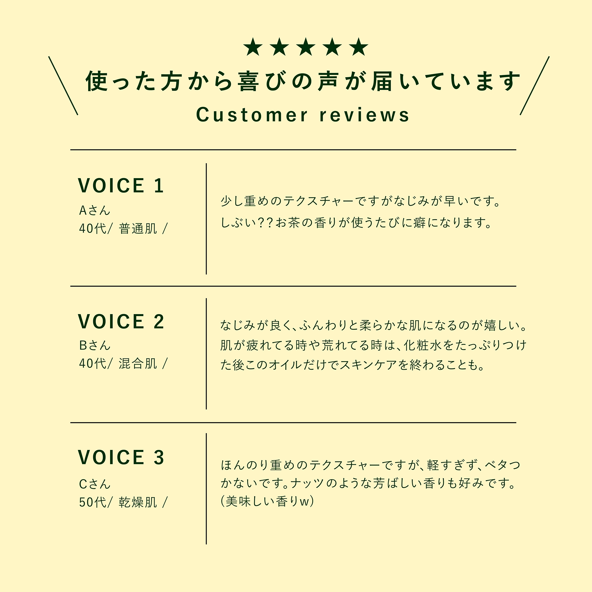 厳選された国産茶の実オイルを使いやすいトライアルサイズに凝縮しました。