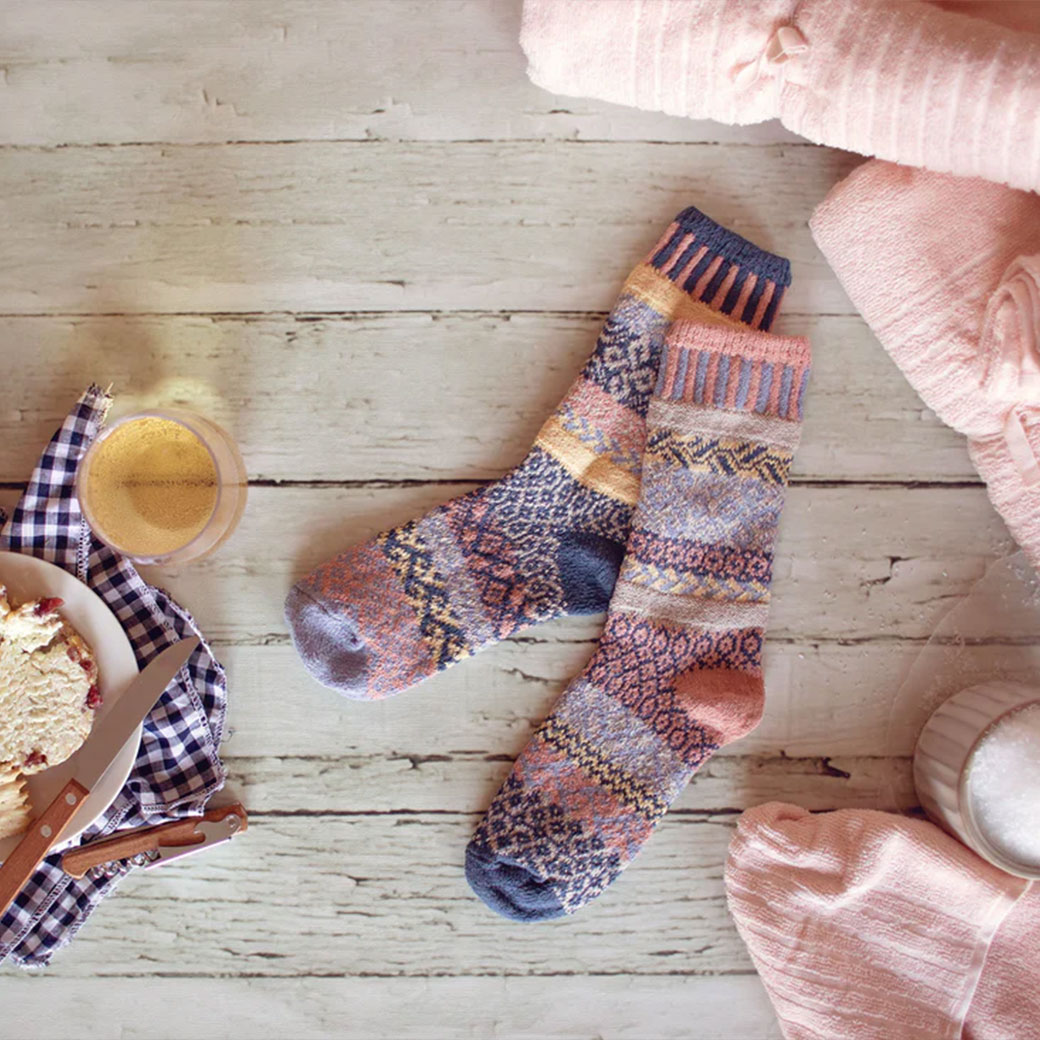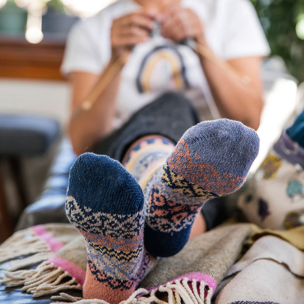 再生糸を使用した「ミスマッチド(左右非対称)」の美しい靴下!
