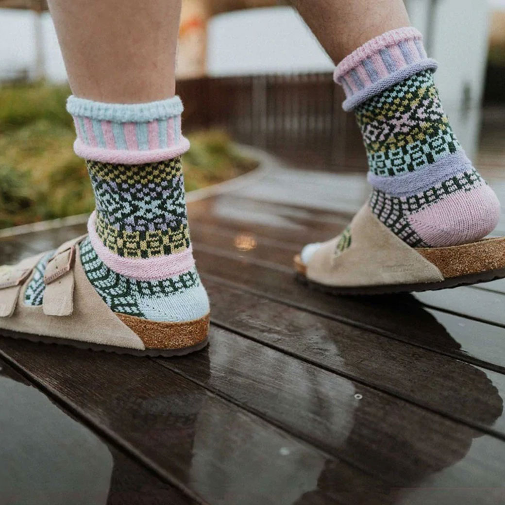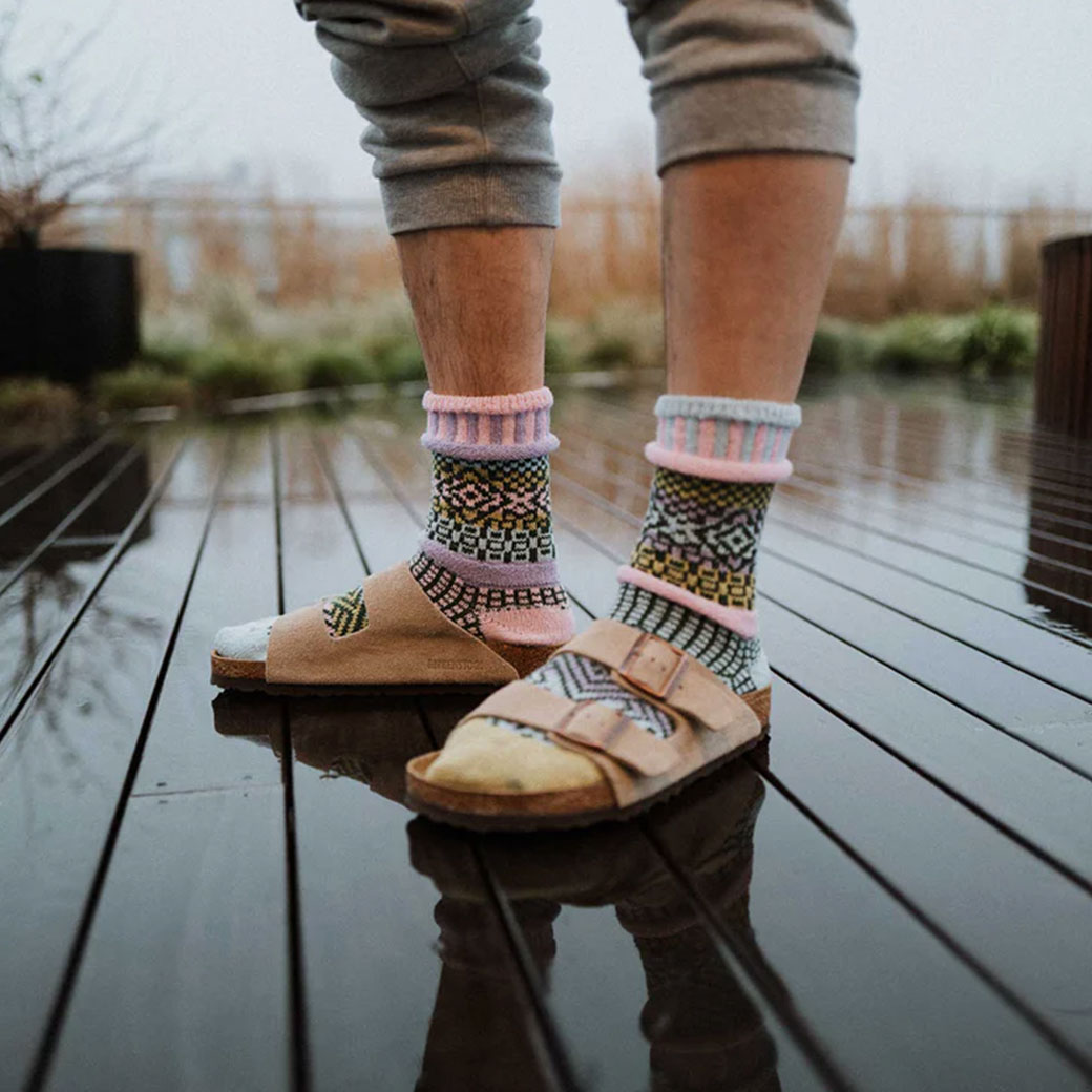 再生糸を使用した「ミスマッチド(左右非対称)」の美しい靴下!