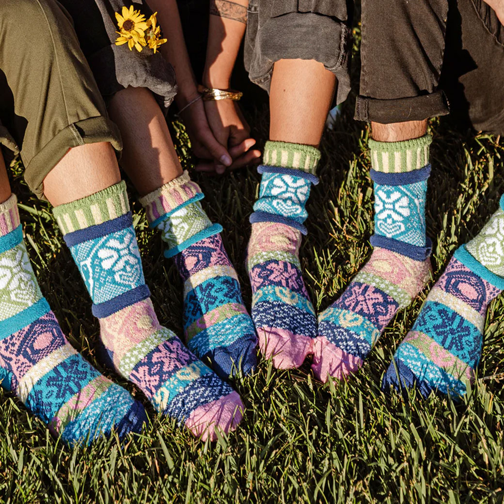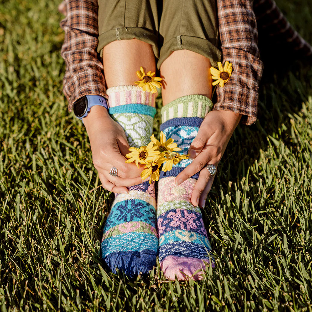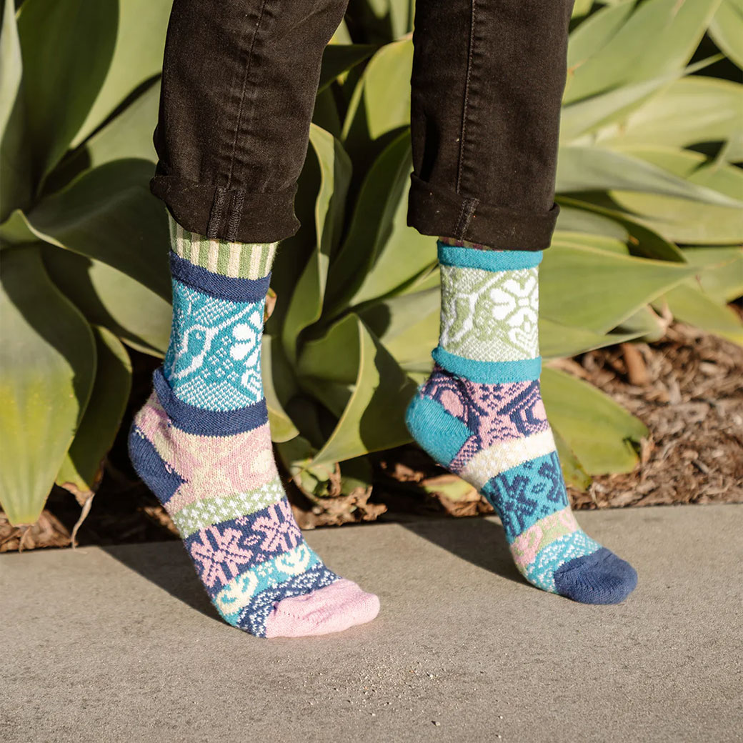 再生糸を使用した「ミスマッチド(左右非対称)」の美しい靴下!