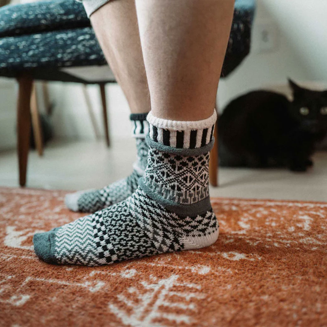 Solmate Socks(ソルメイトソックス)は、アパレル生産工場から出る繊維をアップサイクルし、アメリカ・ノースカロライナ州ヒッコリーの小さな家族経営の工場でサステナブルな靴下を生産しています。