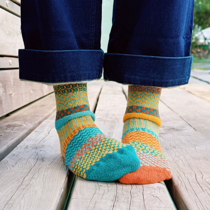 Solmate Socks(ソルメイトソックス)の靴下は、アパレル生産工場から出た余った布や中古衣料などの廃棄物をアップサイクルした再生糸を使用し、ノースカロライナ州ヒッコリーの小さな家族経営の工場で1つ1つ心を込めて生産されています。
