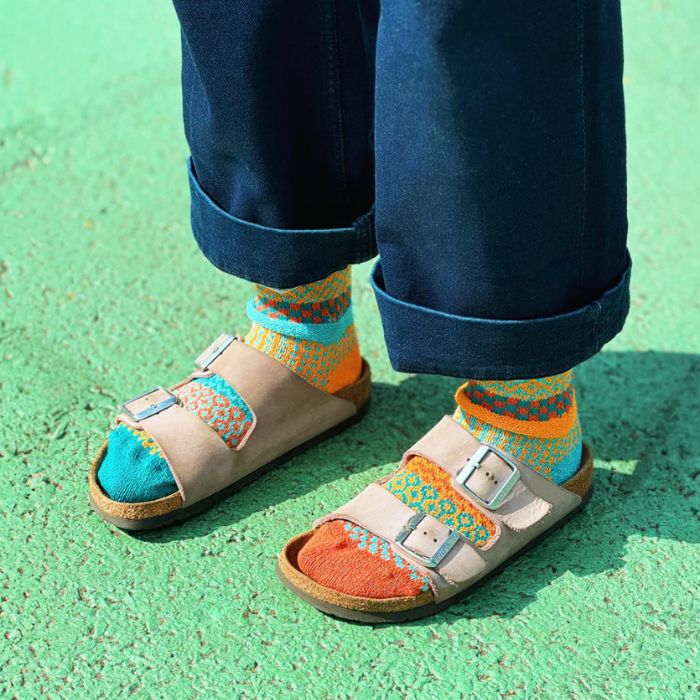 Solmate Socks(ソルメイトソックス)は、アパレル生産工場から出る繊維をアップサイクルし、アメリカ・ノースカロライナ州ヒッコリーの小さな家族経営の工場でサステナブルな靴下を生産しています。