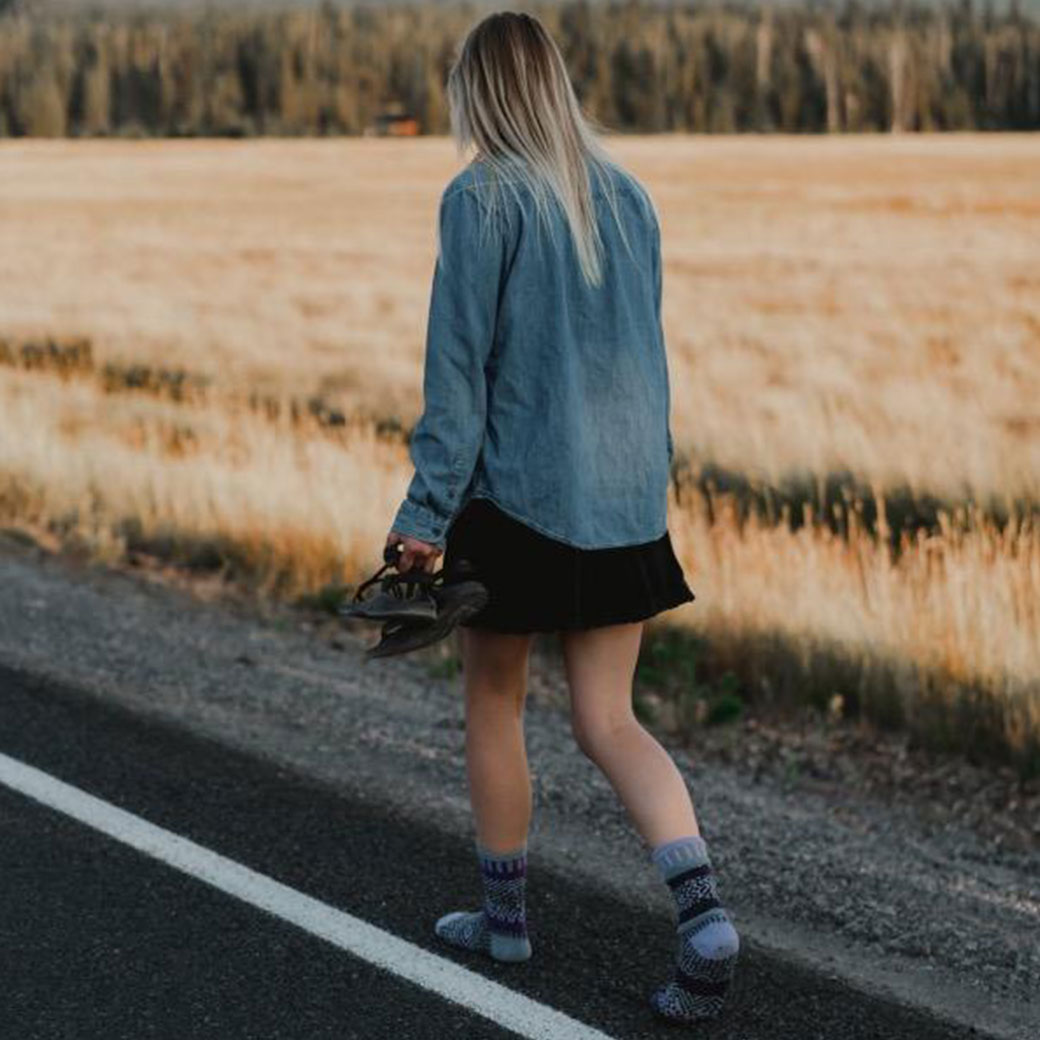 Solmate Socks(ソルメイトソックス)は、アパレル生産工場から出る繊維をアップサイクルし、アメリカ・ノースカロライナ州ヒッコリーの小さな家族経営の工場でサステナブルな靴下を生産しています。