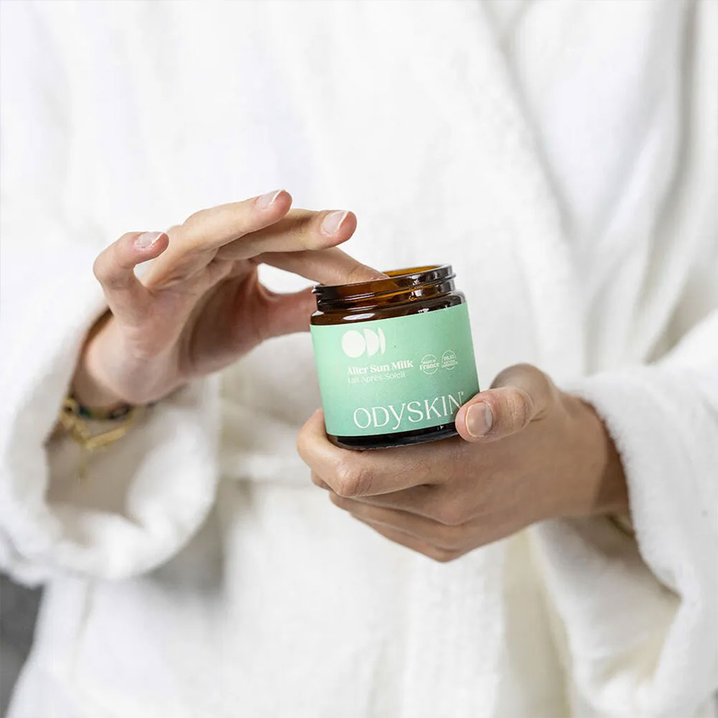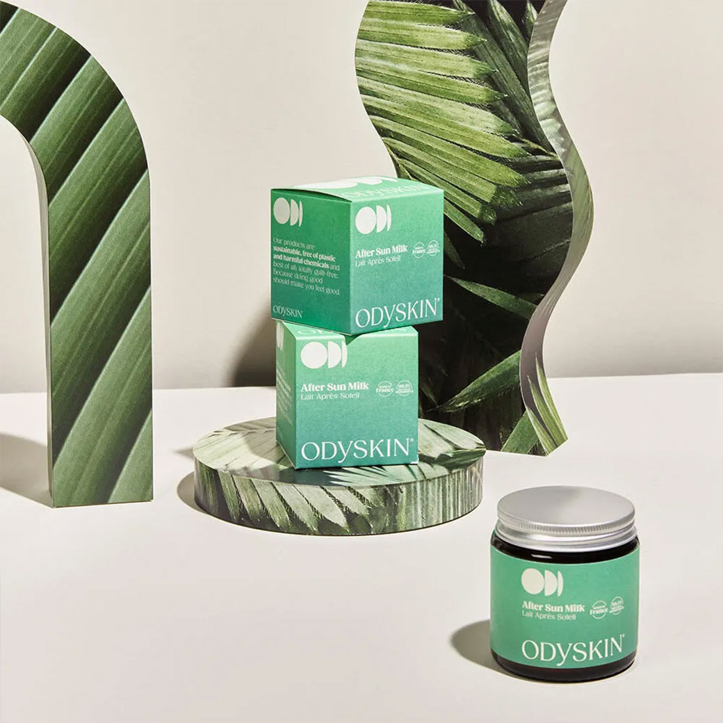 オディスキンのパッケージは、廃棄物を出さないように設計されており、可能な限りプラスチック素材を避けています。日焼け止めはアルミニウムのチューブに入っており、無限かつ簡単にリサイクル可能です。アフターサンは、ガラス瓶にパッケージされており、すべての箱は家庭で堆肥化できます。オディスキンは、人にとっても地球にとっても良いものです。