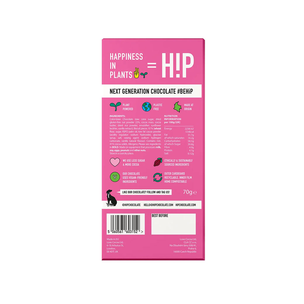 H!P CHOCOLATEは2021年に英国で誕生した、驚くほどクリーミーでくちどけなめらかなヴィーガンのミルクチョコレートブランドです。牛乳の代わりにオーツミルクを使用したチョコレートは、コロンビア産のシングルオリジンカカオを使用した本格的なチョコレート。カカオの旨みとオーツの麦の香ばしさのコンビネーションは一度食べたら病みつきになる人続出!