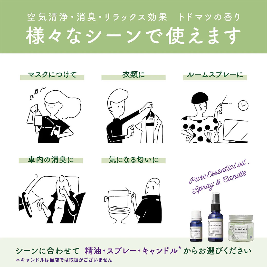 花粉症対策として: マスクの外側にスプレーしてください。トドマツの香り成分が花粉アレルゲンを弱体化して、症状を和らげます。