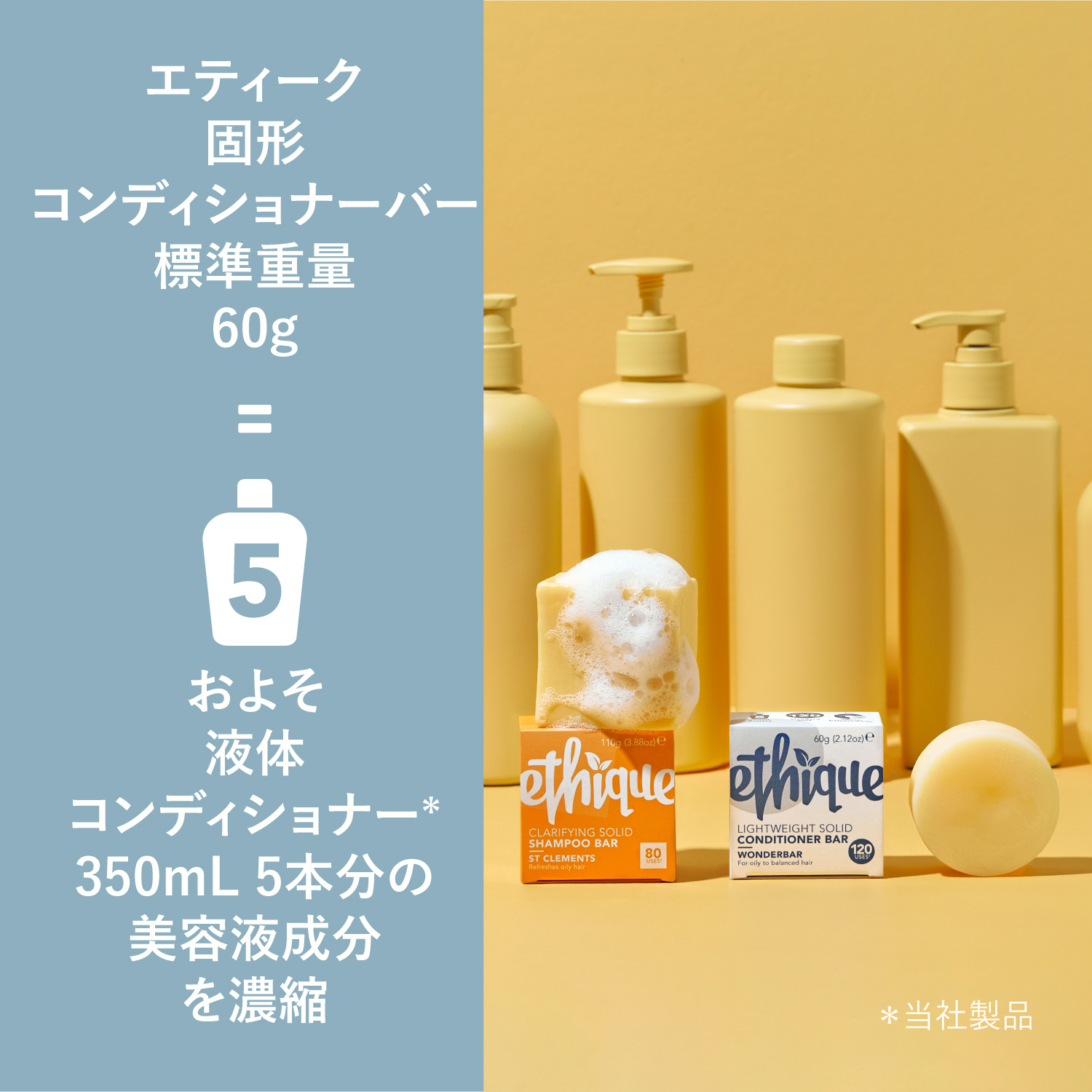 こちらのコンディショナー バー ワンダーバー 60gを使用することで350mlのプラスチックボトル5本分が削減できます。