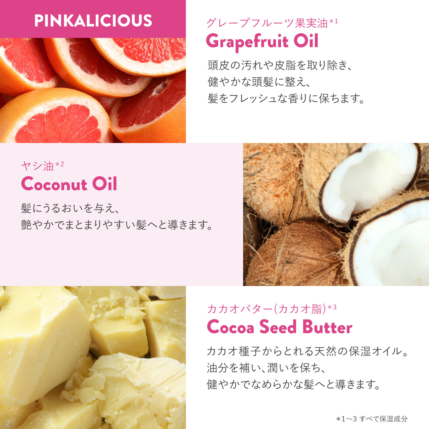 髪と頭皮に必要なものだけを必要なだけ配合し、自分史上の理想の髪質へと導く処方が特徴。ココナッツオイル(ヤシ油)*やカカオバター(カカオ脂)*をベースに、美容液成分をギュッと濃縮しました。
