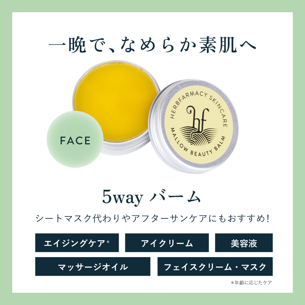 疲れてくすんだ肌、集中ケアが欲しい時、乾燥など、どのお肌のタイプにも使用できますがフェイスマスクとしてもご使用になれます。全ての肌タイプに。フェイス用におすすめのバームです。
