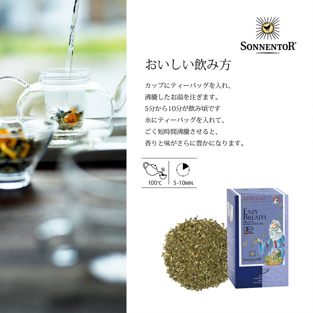 有機ブラックベリーの葉、有機タイム、有機ヒソップ、有機エルダーフラワー、有機フェンネル、有機セージ、有機ジュニパーベリー、有機スペアミント、有機マロウ